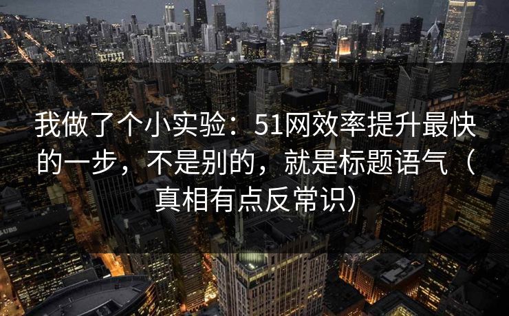 我做了个小实验:想找出在51网这类内容平台上,哪一步能最快提高“效率”——也就是吸引点击、延长阅读、提升转化。直奔主题:不是改内容长度,也不是图文排版,最快的一步,竟然是换一个“标题语气”。结果有点反常识,但数据摆在这儿。