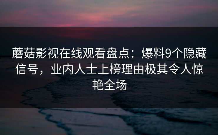 蘑菇影视在线观看盘点:爆料9个隐藏信号,业内人士上榜理由极其令人惊艳全场