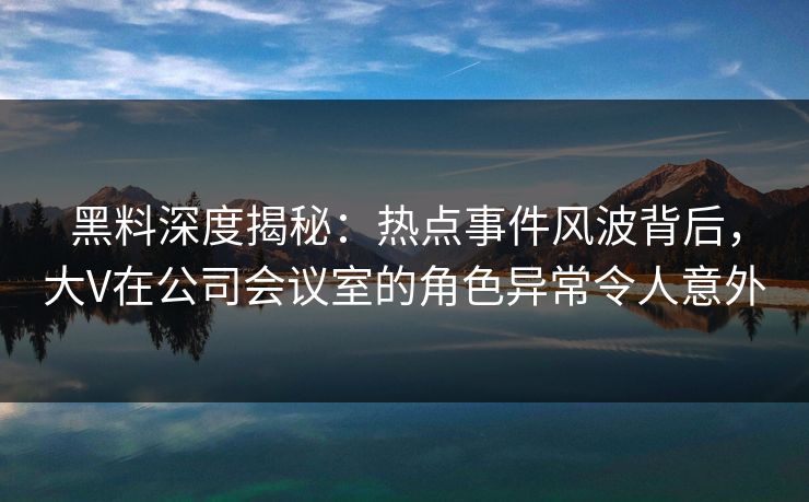 黑料深度揭秘:热点事件风波背后,大V在公司会议室的角色异常令人意外